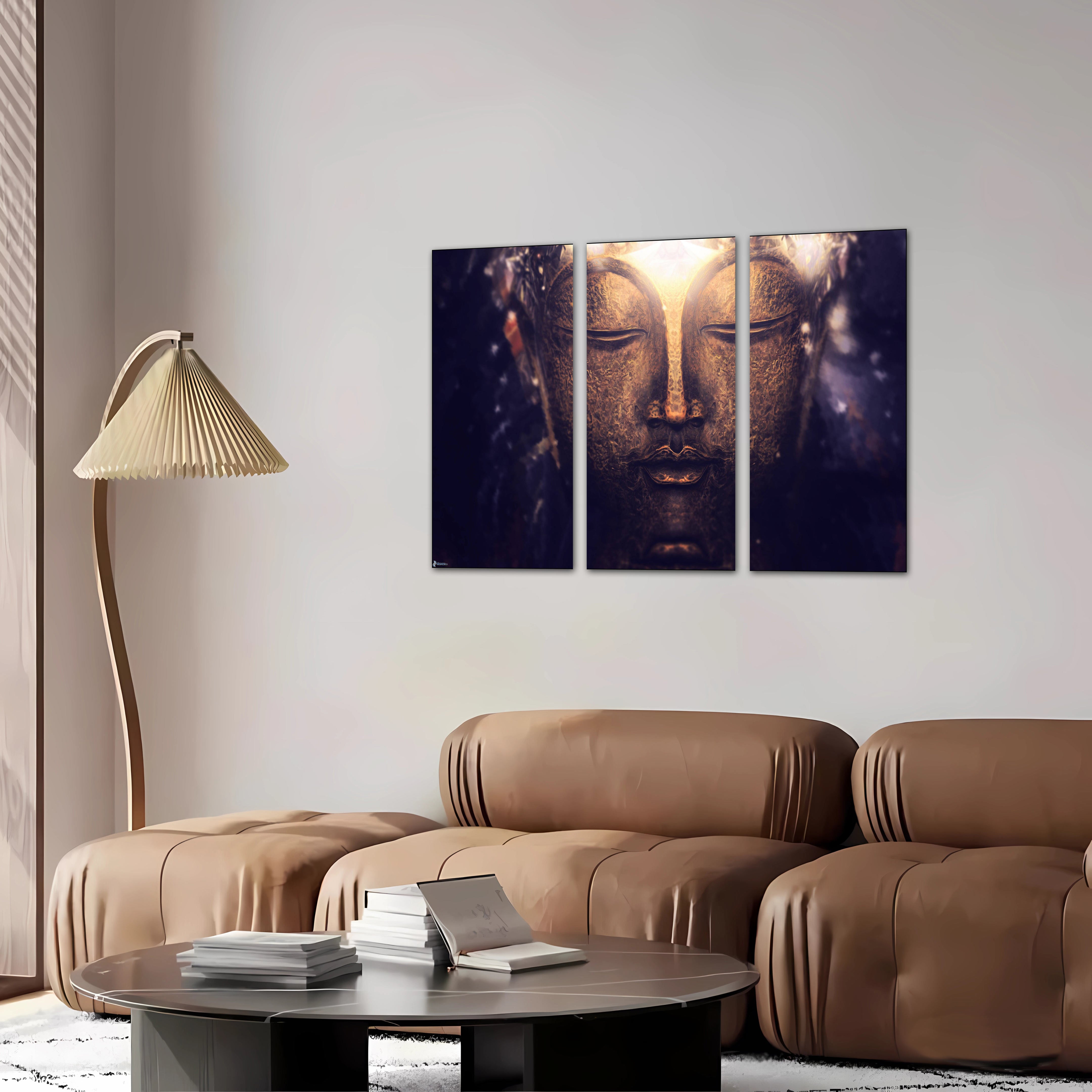 Tríptico buda oriental ,cara, relajacion, meditacion, zen