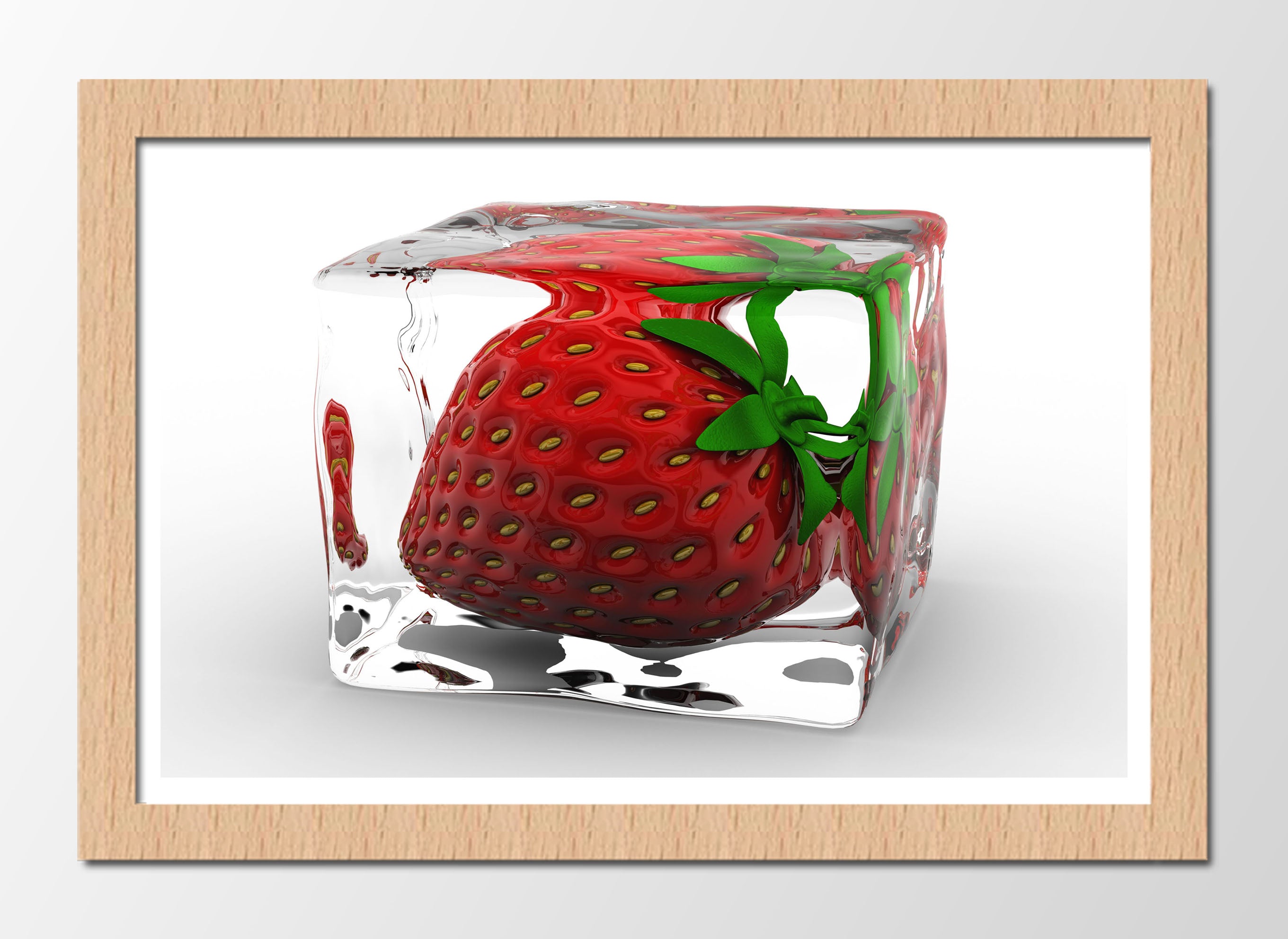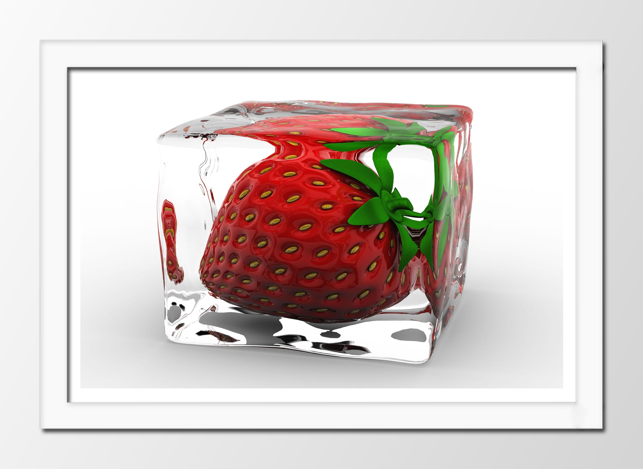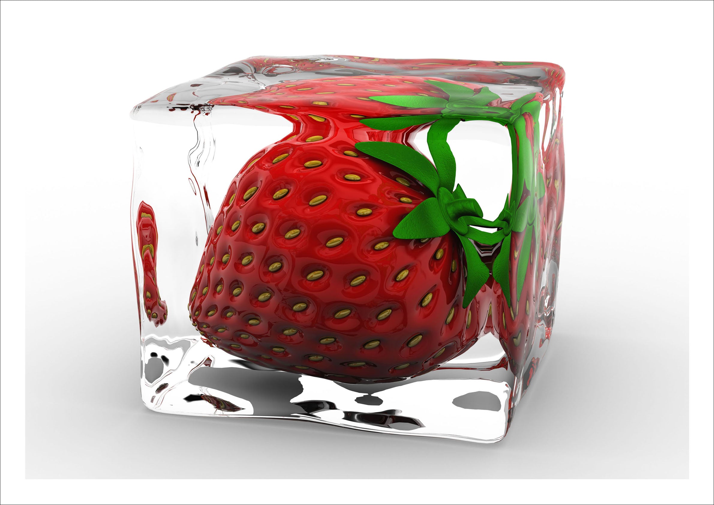 fresa dentro de un cubito de hielo