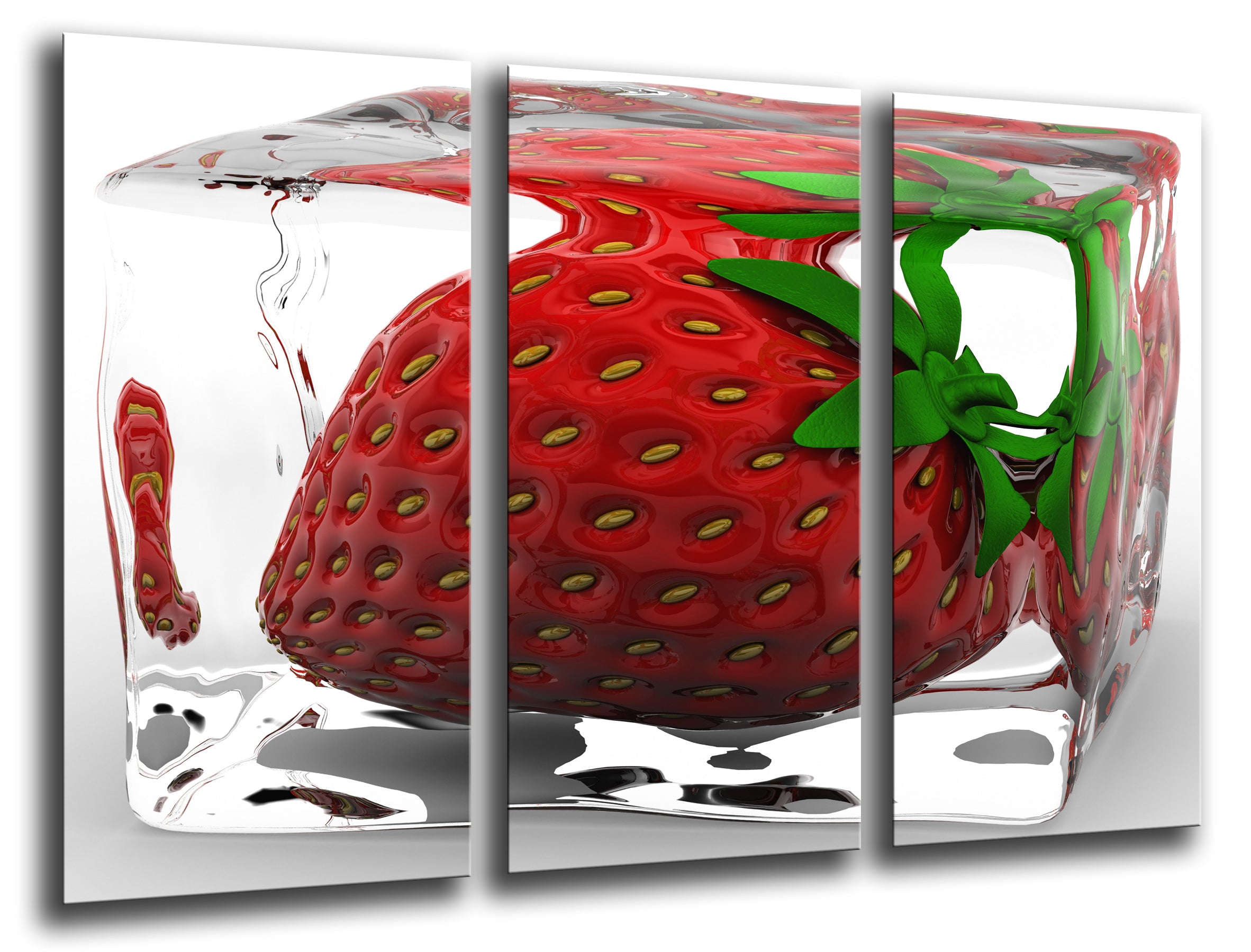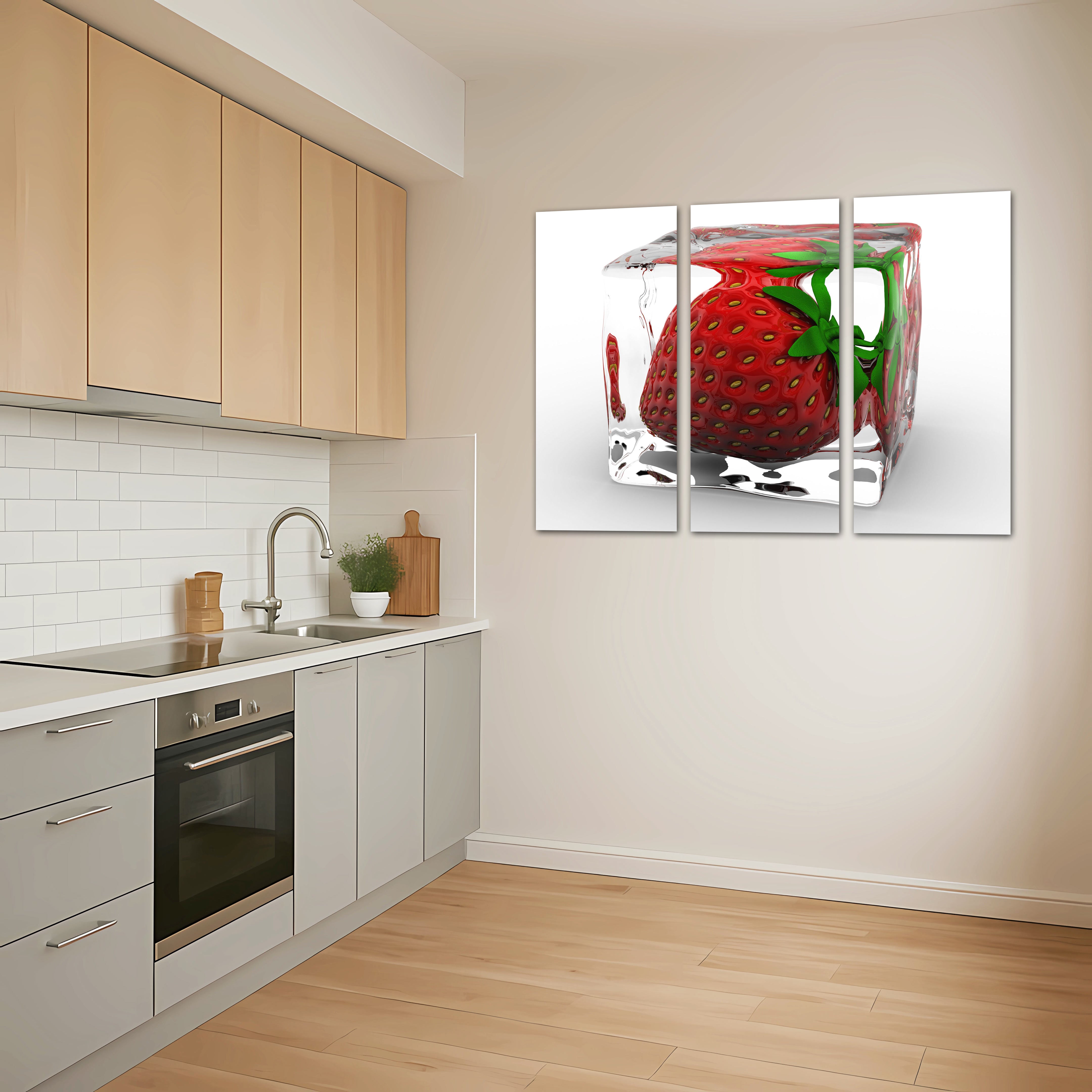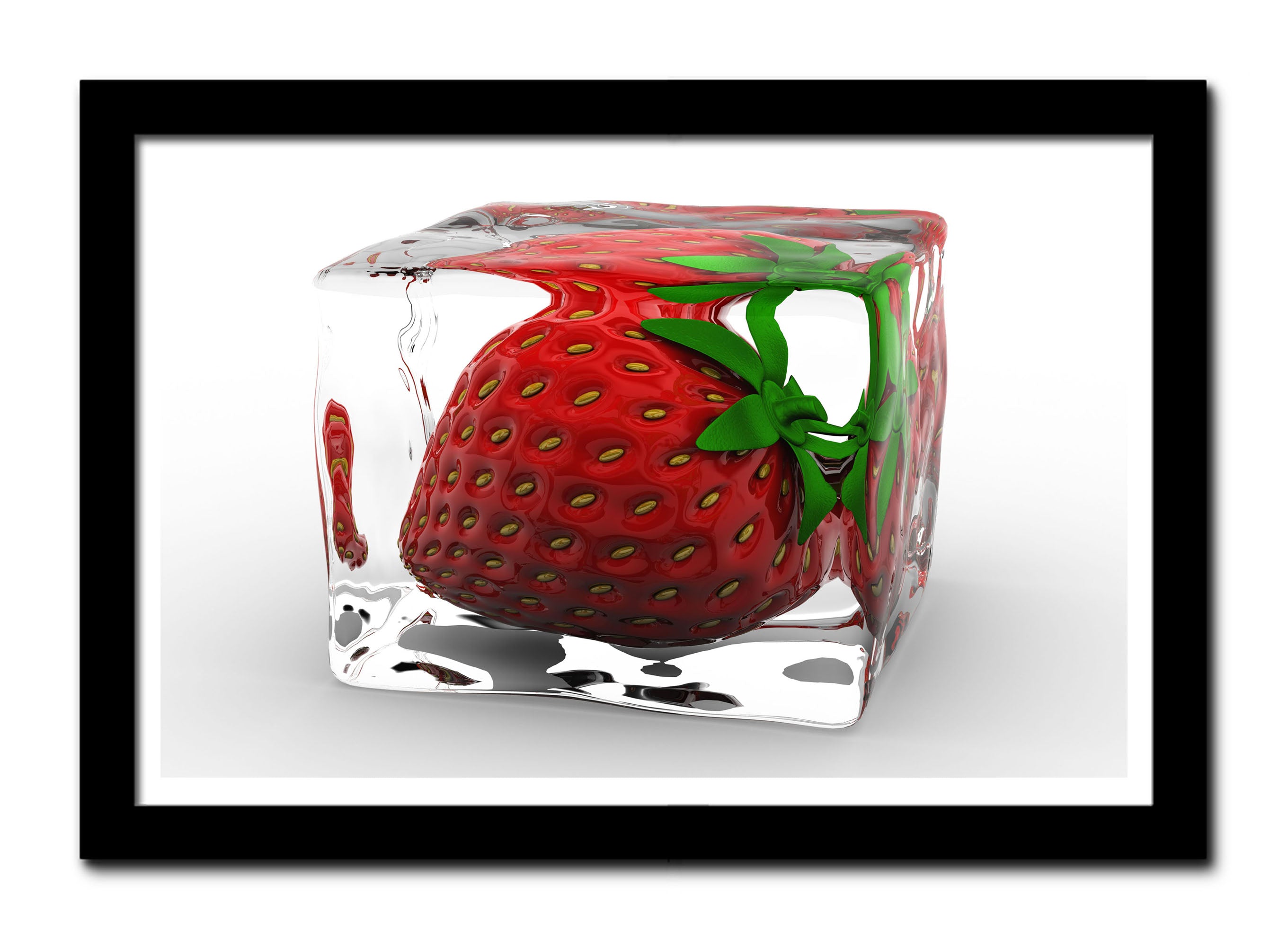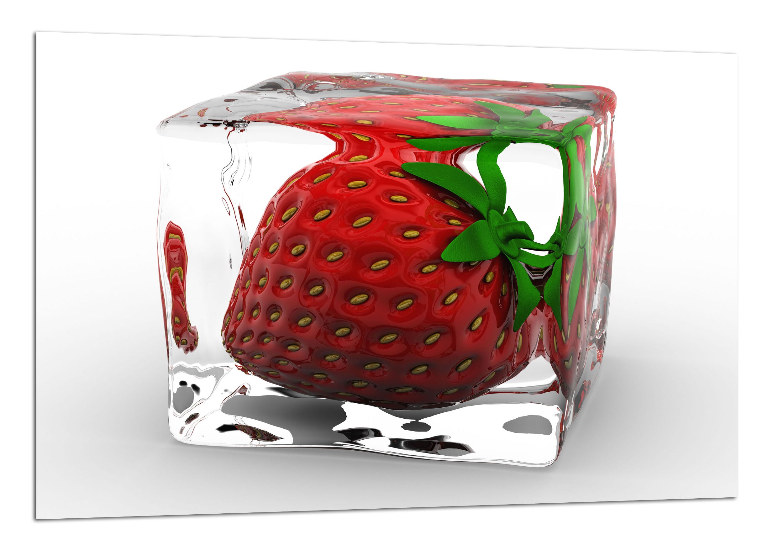 fresa dentro de un cubito de hielo