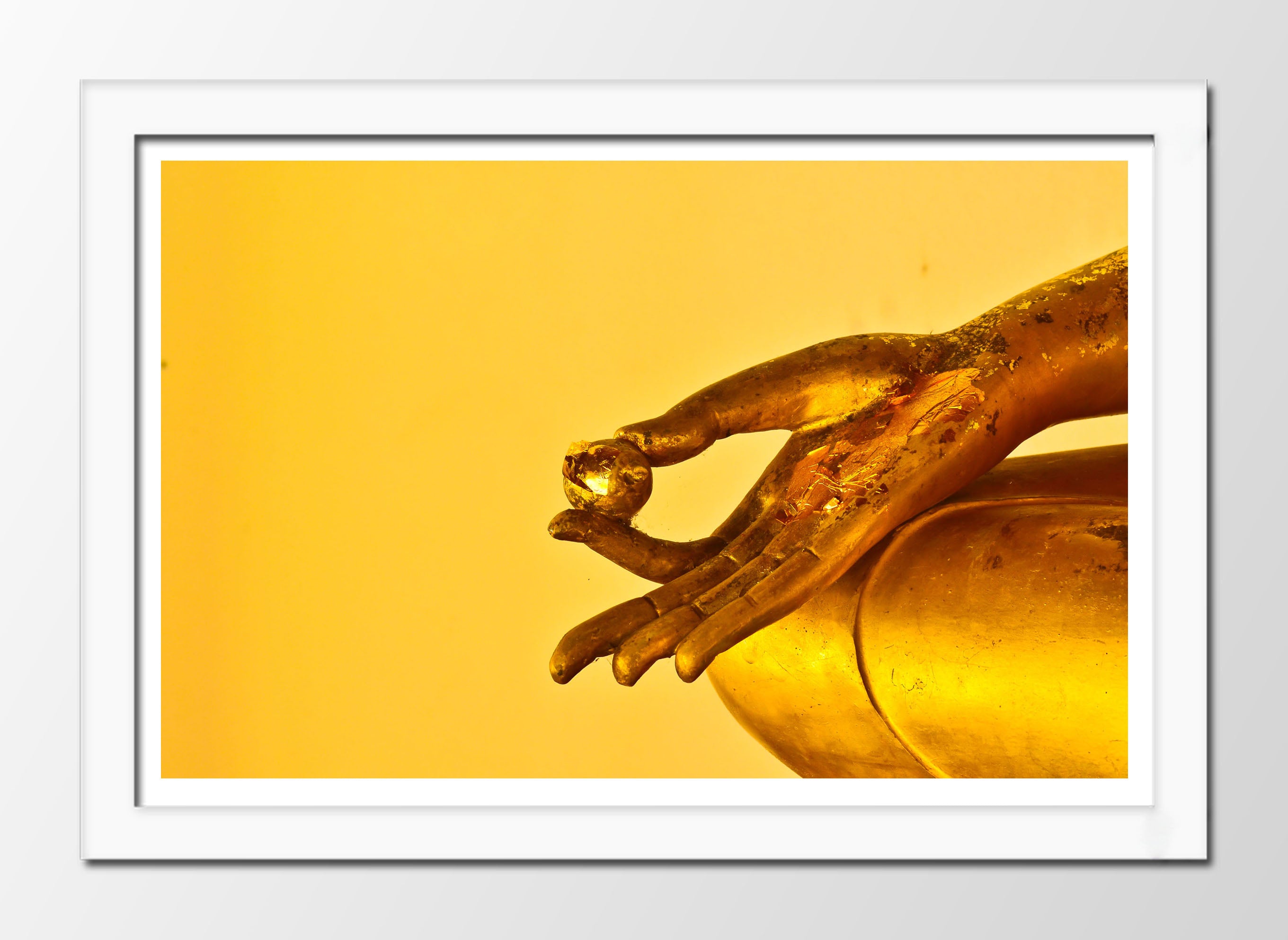 Cuadro enmarcado blanco buda oriental ,mano, amarillo, relajacion, meditacion, zen