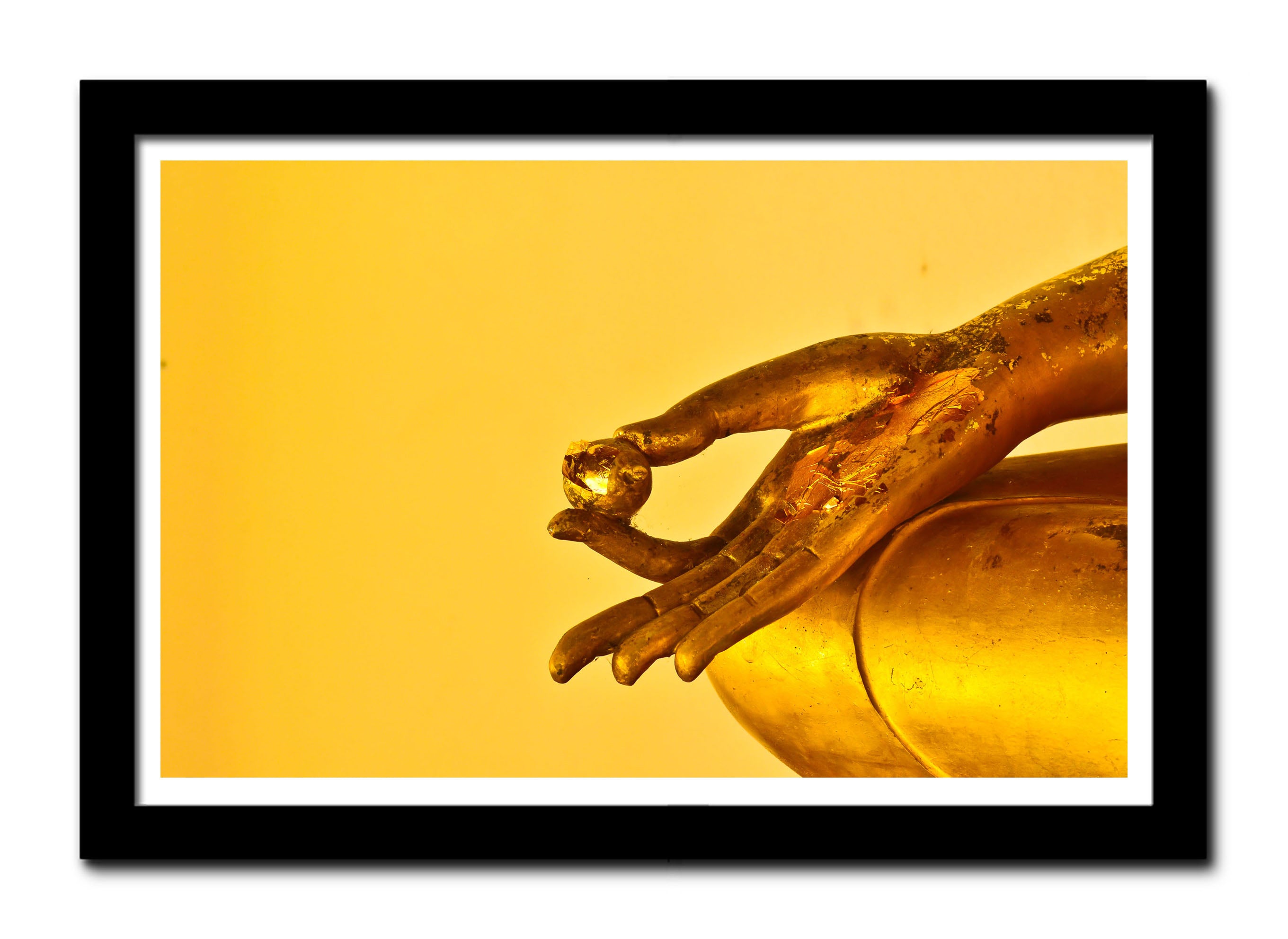 Cuadro enmarcado natural buda oriental ,mano, amarillo, relajacion, meditacion, zen