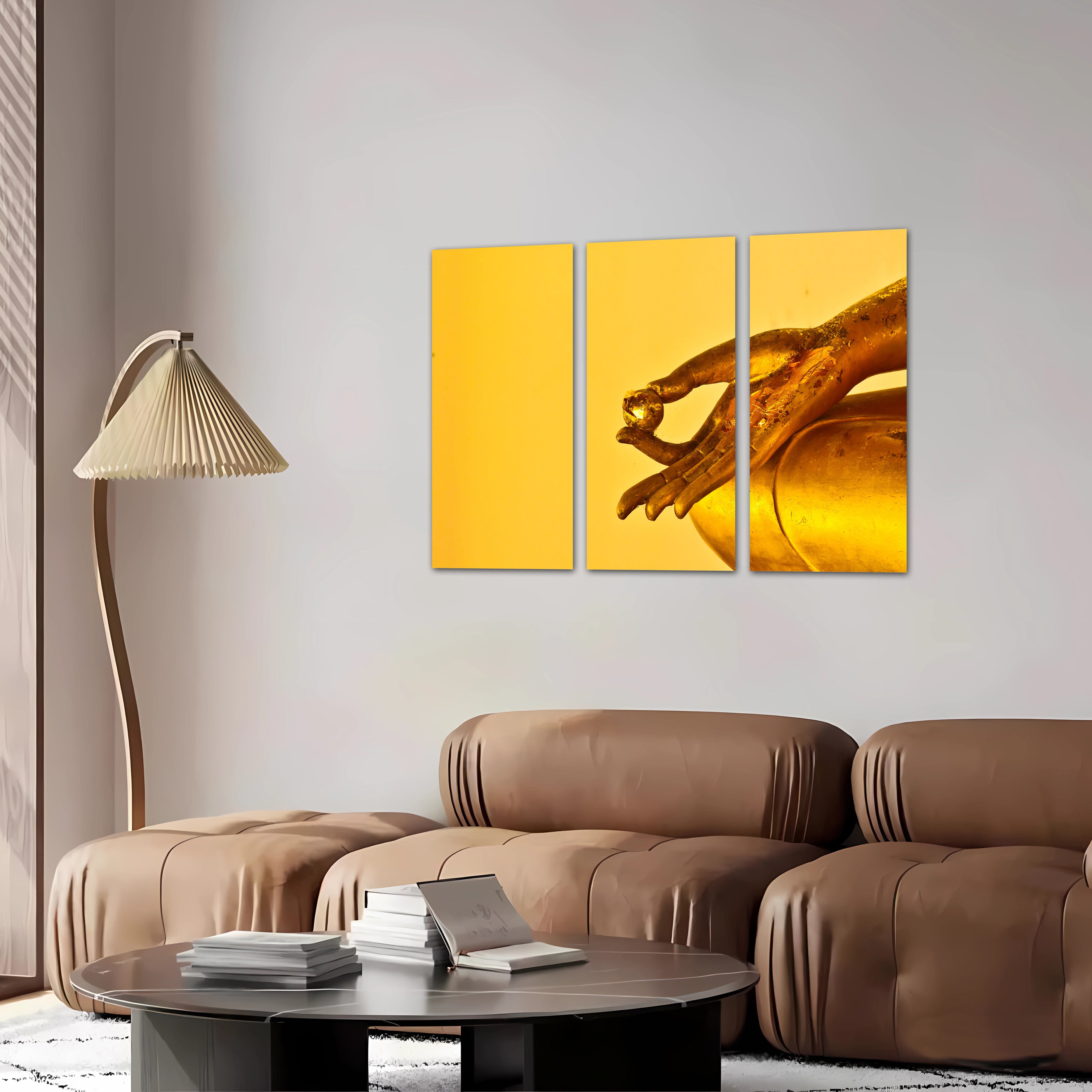 Tríptico buda oriental ,mano, amarillo, relajacion, meditacion, zen