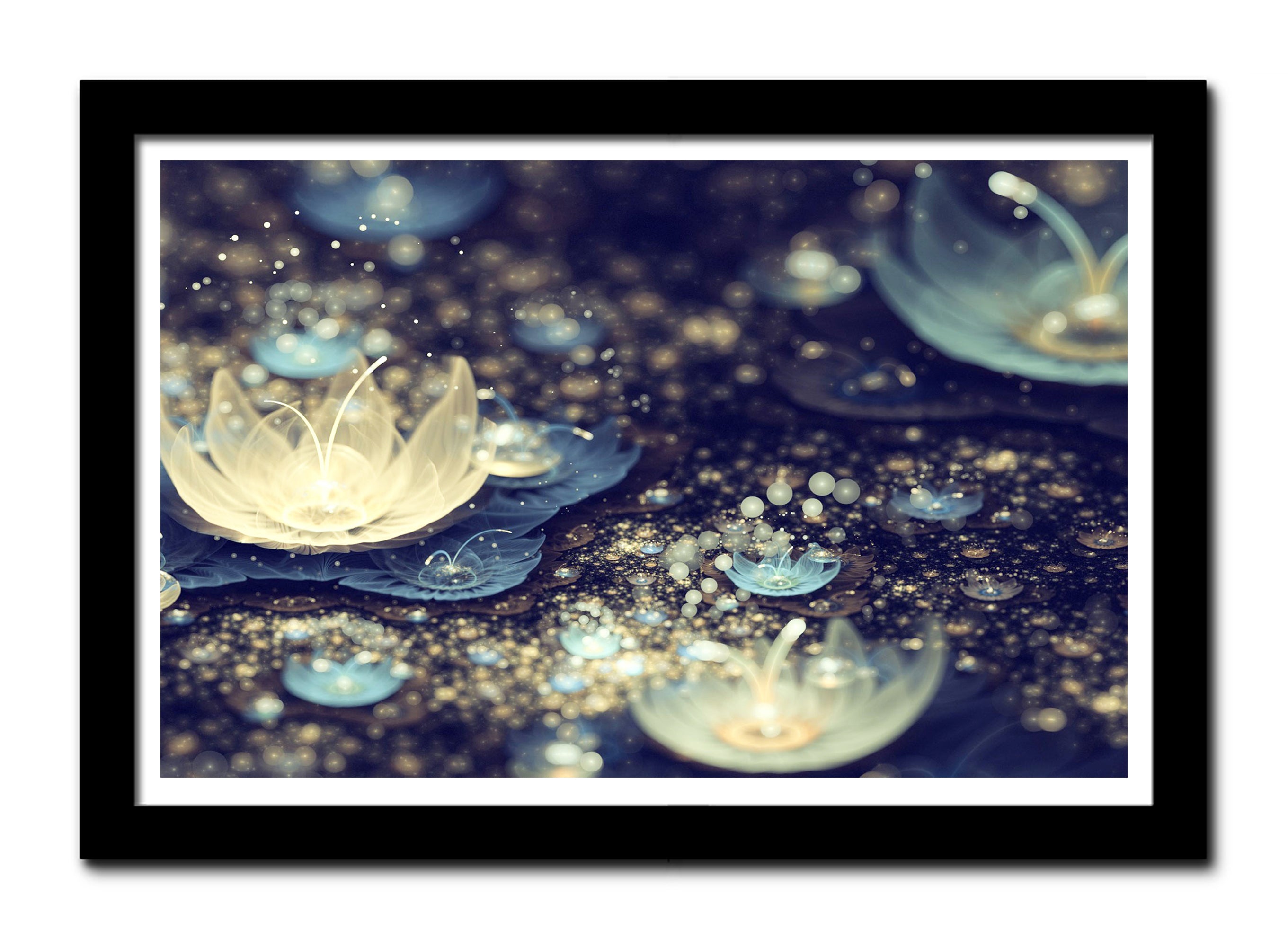 Cuadro enmarcado negro Flor Nenufar, Buburbujas de Brillo