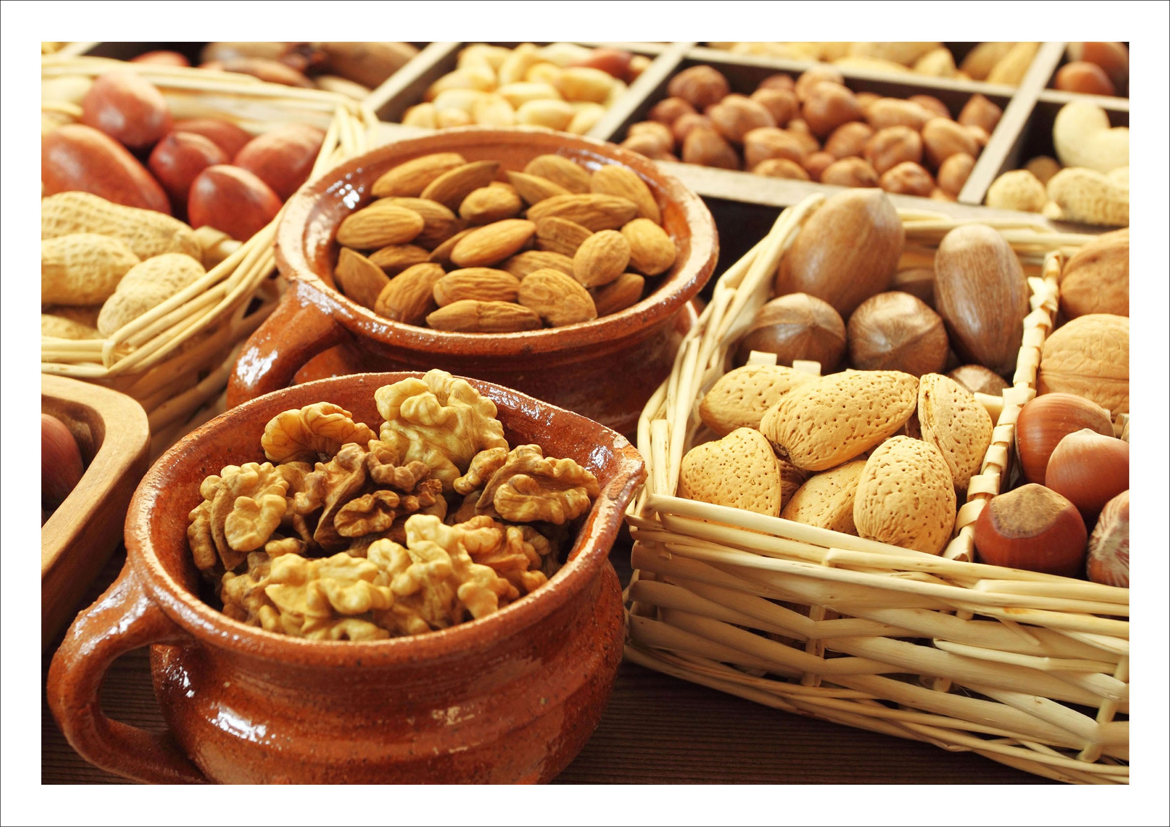 Cuadro frutos secos, almendras, nueces, aperitivos