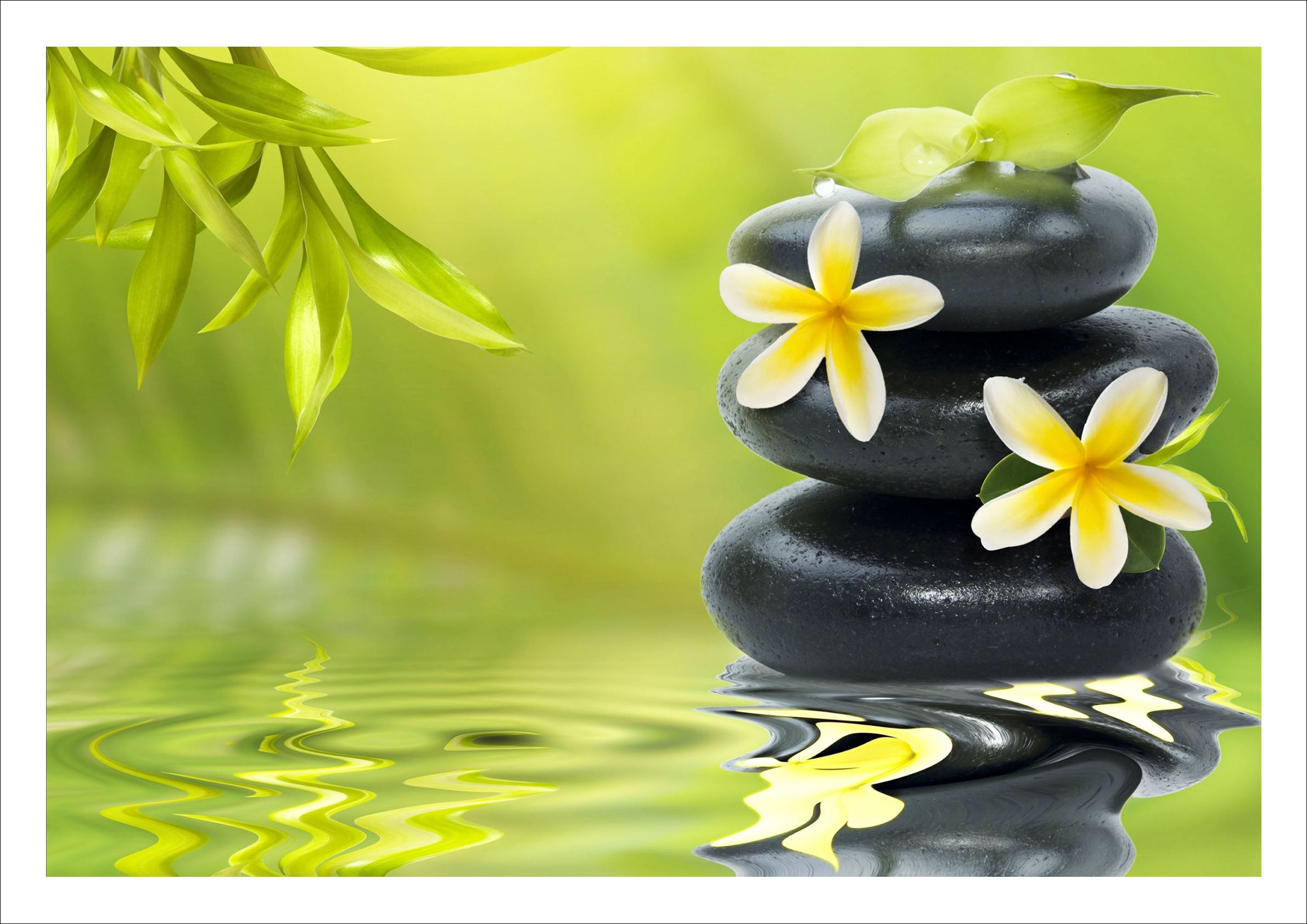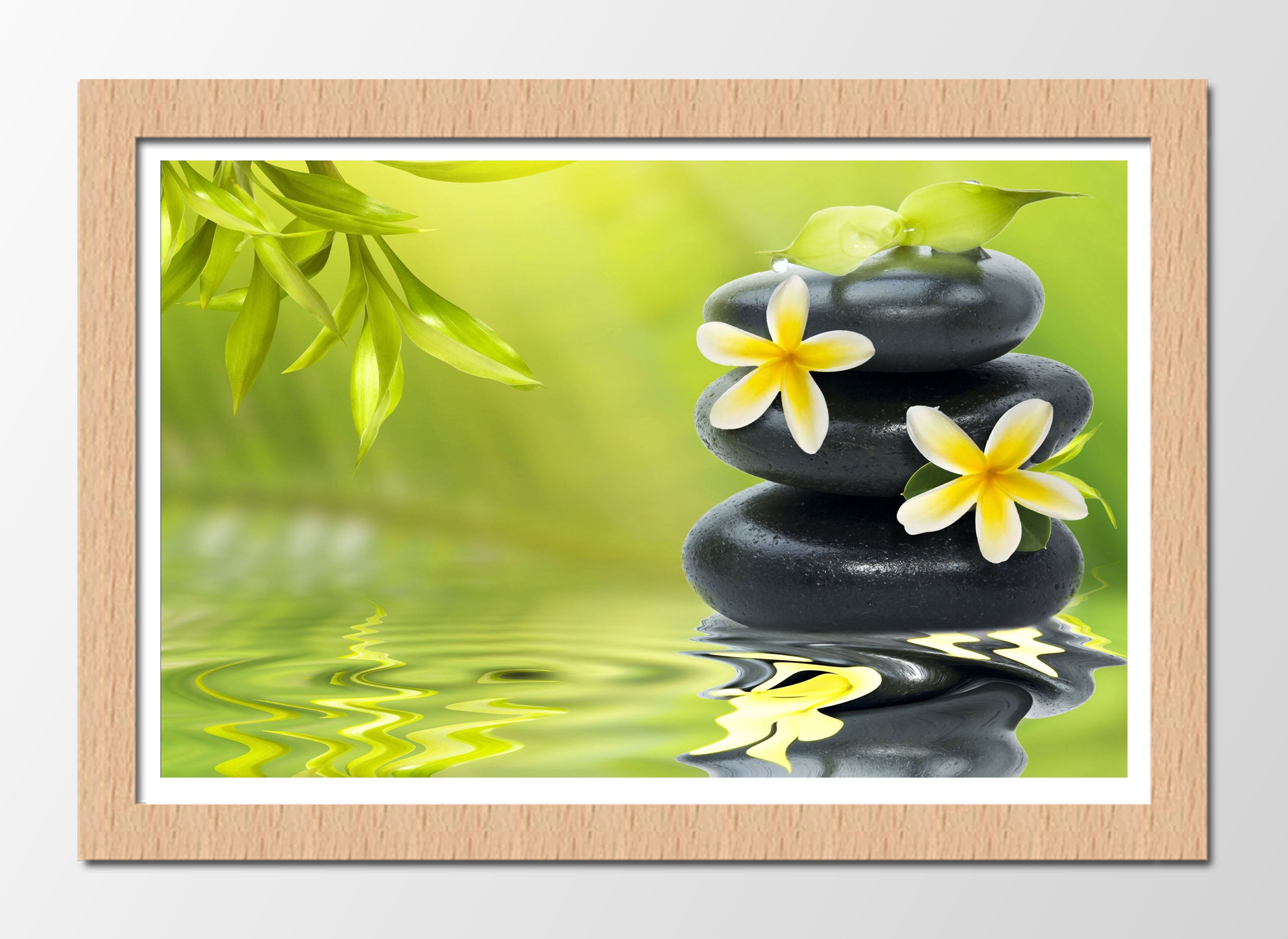 Lámina oriental ,piedra, tonos verde, decoracion, relajacion